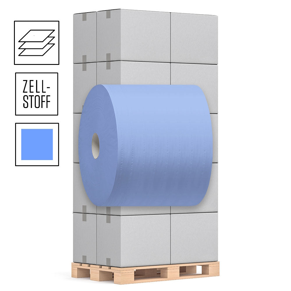 1 Palette Putzrollen, 3-lagig, blau, Zellstoff , 36cm Breite, mit 1000 Blatt pro Rolle, Pal.= 30 VE