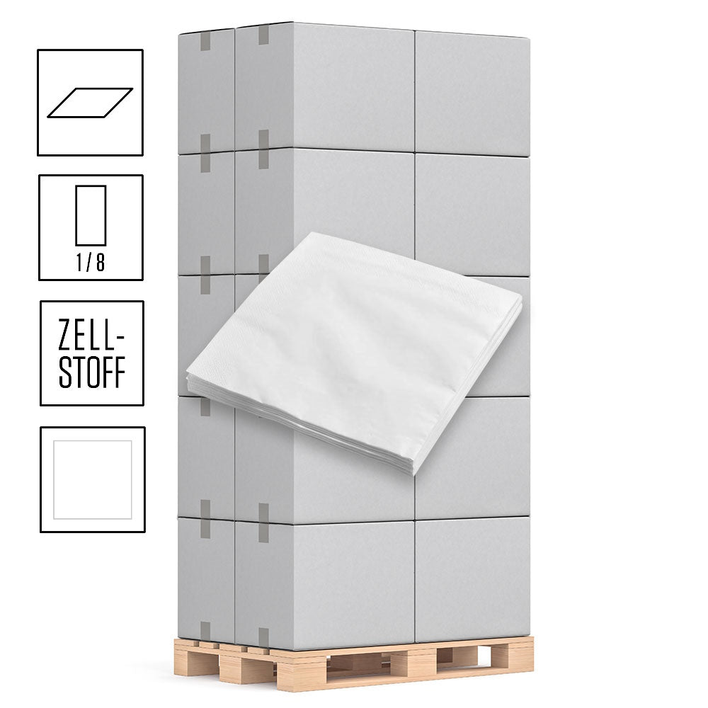 1 Palette Servietten 1-lagig, 33cm x 33cm, 1/8 Falz, Zellstoff hochweiß, 5000 Stück, Pal.= 24 VE