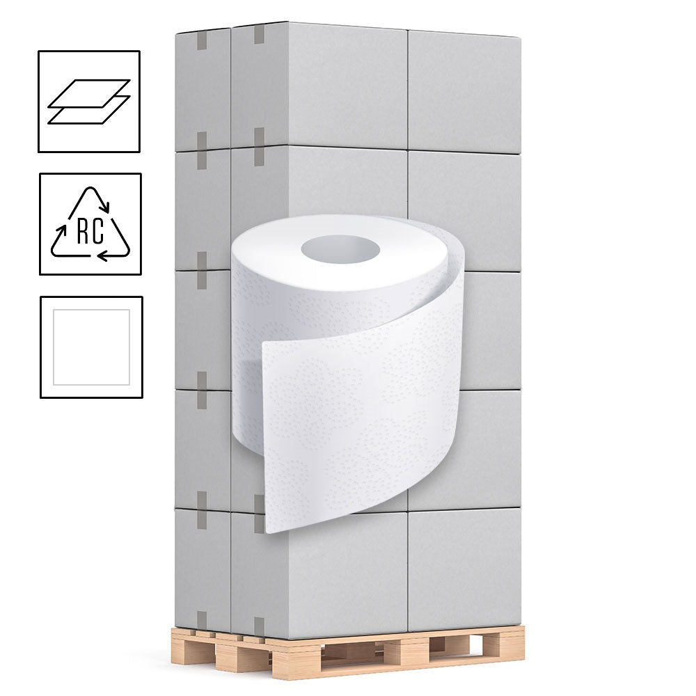 1 Palette Toilettenpapier 2-lagig, Recycling weiß, 400 Blatt pro Rolle, Pal.= 44 VE