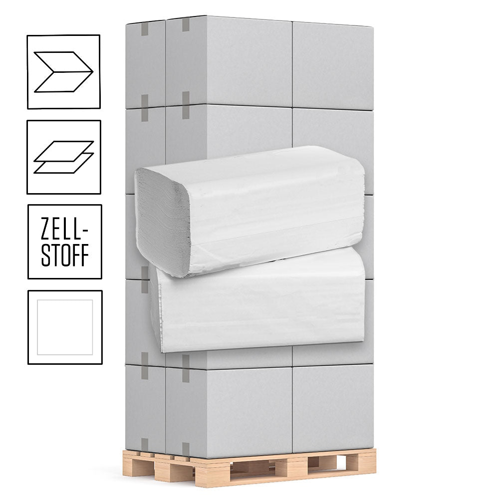 1 Palette Falthandtücher 2-lagig, Zellstoff hochweiß, 25cm x 21cm V/ZZ-Falz, 3200 Blatt, Pal.= 32 VE
